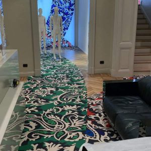 Realizzazioni di installazione di moquette o decorazioni per eventi di moda e negozi di marchi prestigiosi in Italia.